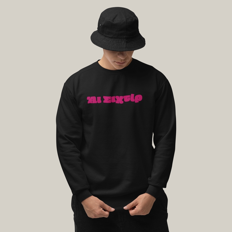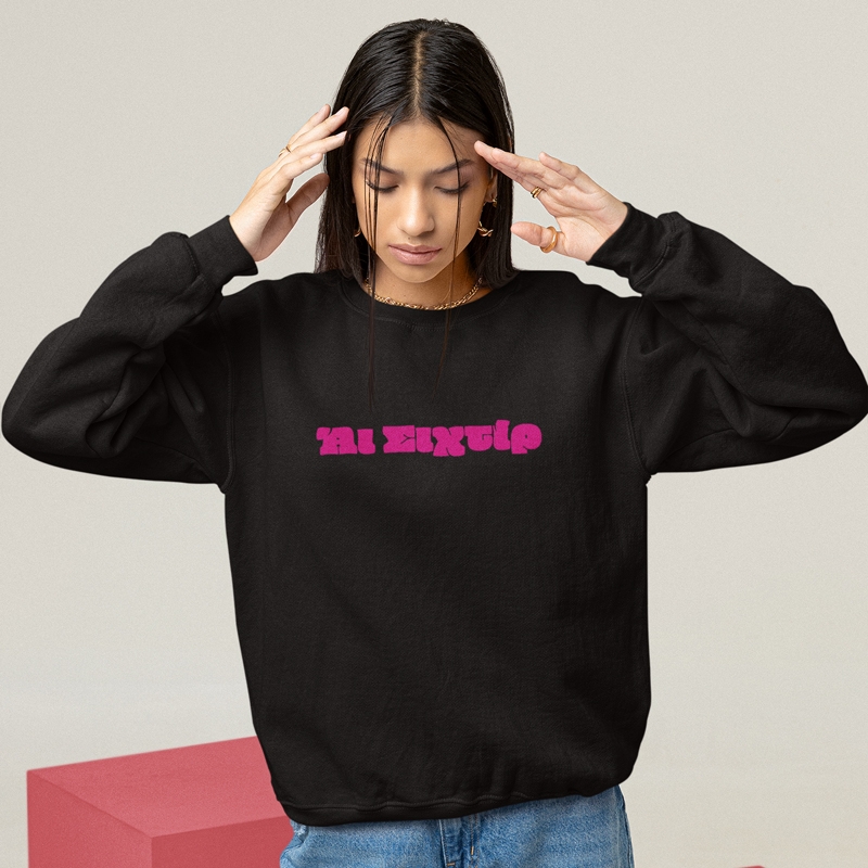 Unisex φούτερ crewneck σε μαύρη απόχρωση με μήνυμα «Άι Σιχτίρ».