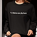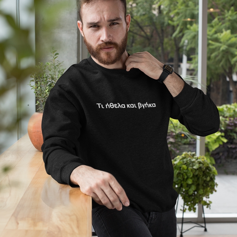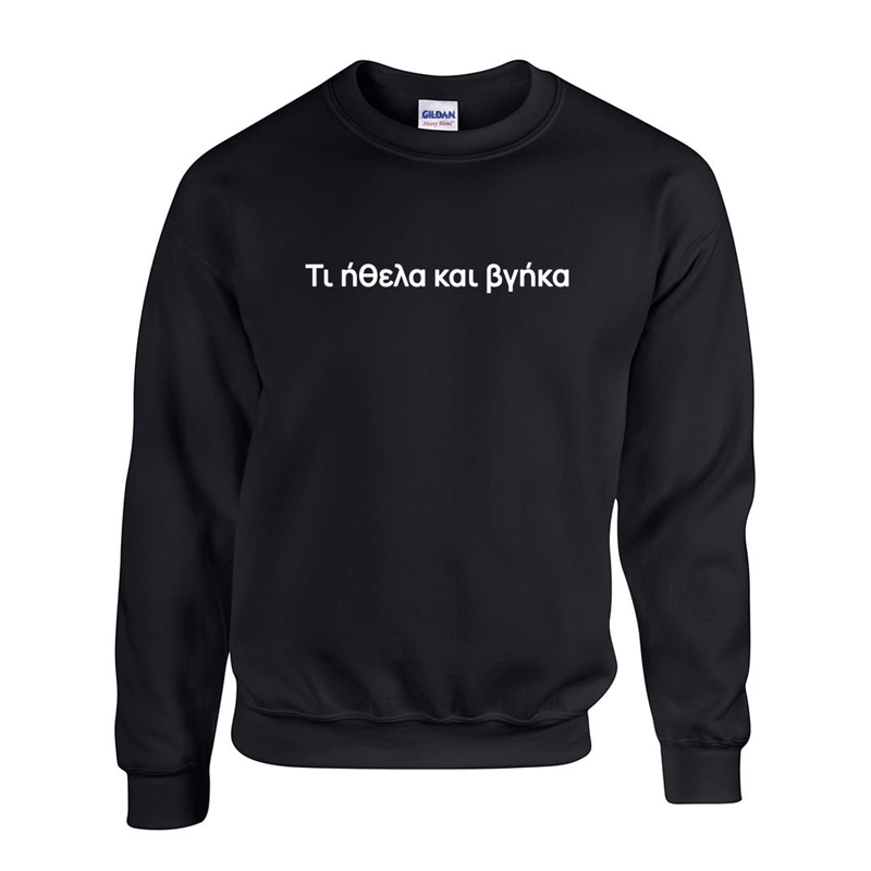 Unisex φούτερ crewneck σε μαύρη απόχρωση με μήνυμα «Τι ήθελα και βγήκα».