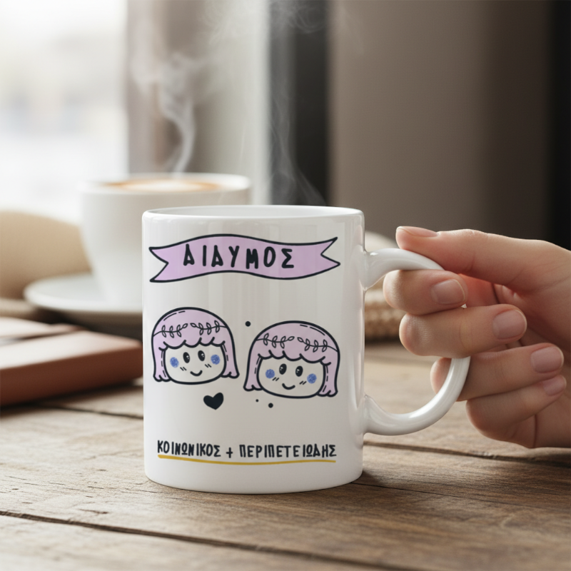 Πρωτότυπη κούπα ζωδίων με χαριτωμένες ατάκες για Διδύμους.