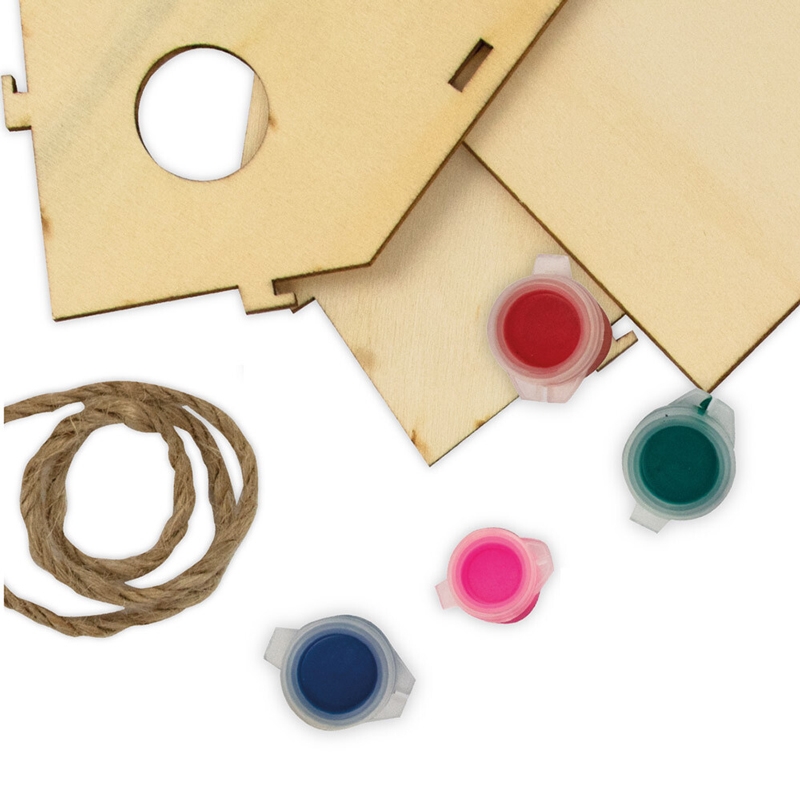 Περάστε δημιουργικά τον ελευθερό σας χρόνο με αυτό το Kit DIY κατασκευής με το σπιτάκι του πουλιού. Το σετ περιλαμβάνει: 8 μικρά δοχεία με νερομπογιά, 1 πινέλο, 1 κομμάτι σκοινί και ξύλινα κομμάτια για την κατασκευή. Διακοσμήστε μετά το χώρο σας με την υπέροχη κατασκευή που έχετε δημιουργήσει!