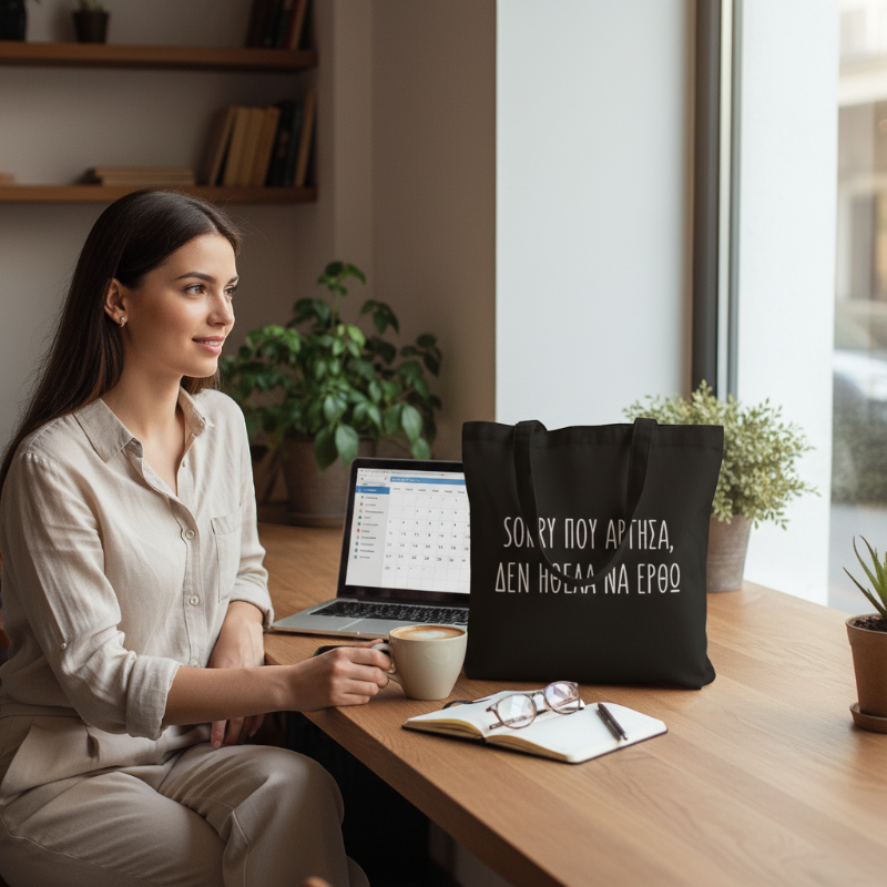 Μαύρη τσάντα με χερούλι - Sorry που άργησα