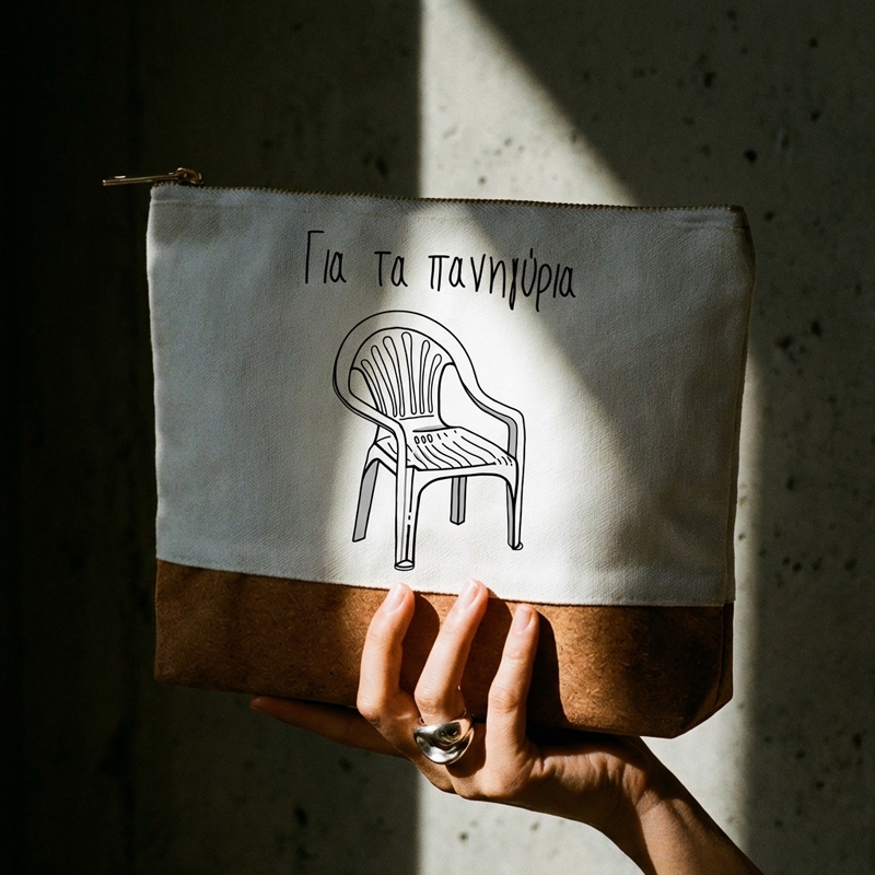 Είτε πηγαίνετε στο πανηγύρι του χωριού είτε απλά θέλετε να δείξετε το χιούμορ σας, το πρωτότυπο νεσεσέρ με μήνυμα «Για τα πανηγύρια» είναι ιδανικό για να σας συντροφεύσει σε κάθε χορό, γλέντι και καλοκαιρινή βραδιά! Η τέλεια επιλογή για να σας θυμίζει τα καλοκαιρινά πανηγύρια σε κάθε σας εξόρμηση.