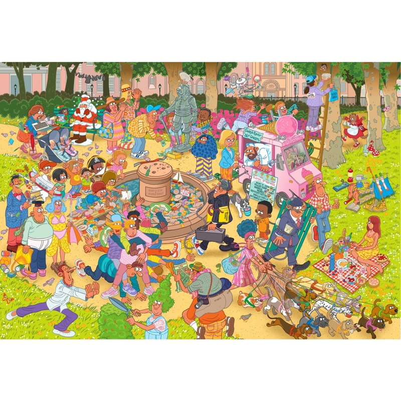 Το Παζλ Bluebird Chuckle Park, με 1000 κομμάτια, είναι ένα ξεχωριστό παζλ για να ακονίσετε το μυαλό σας και να βρείτε αφορμή για λίγο γέλιο ταυτόχρονα. Κομμάτι - κομμάτι, χτίστε τον γεμάτο κίνηση κόσμο του πάρκου και σε κάθε σκήνη βρείτε αφορμή για να γελάσετε με τις αστείες καταστάσεις της. Ιδανικό δώρο για λάτρεις των παζλ, προσφέρει μια απολαυστική εμπειρία σύνθεσης και ένα έργο που μπορεί να αποτελέσει είδος προς διακόσμηση.