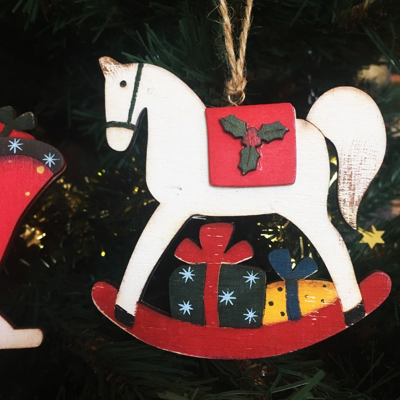 Σετ 2 κρεμαστά ξύλινα στολίδια έλκυθρο και αλογάκι