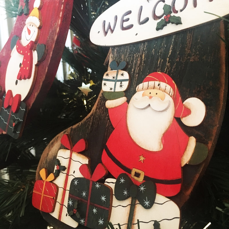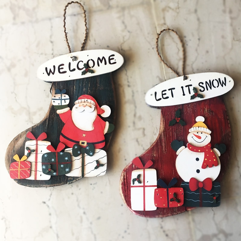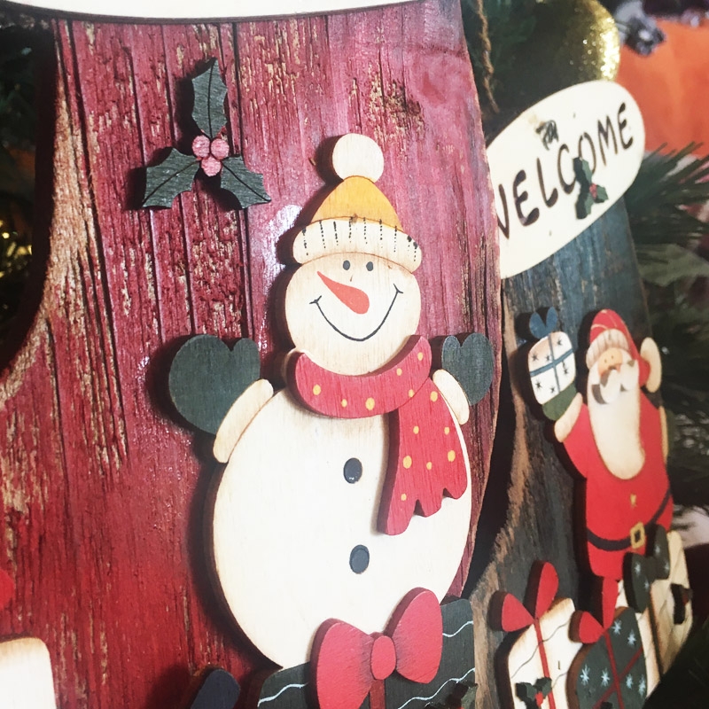 Χαρούμενες ξύλινες διακοσμητικές κάλτσες με τον χιονάνθρωπο και τον Άγιο Βασίλη!
