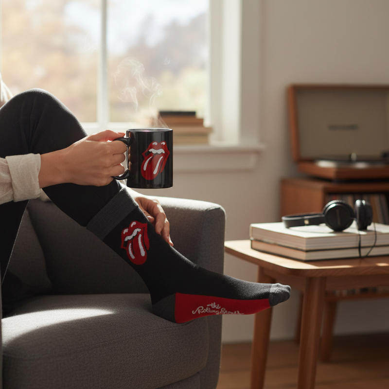 Απελευθερώστε τον «γερόλυκο της ροκ» μέσα σας με μια τη μαύρη κούπα και ένα ζευγάρι άνετες κάλτσες με το διαχρονικό λογότυπο του συγκροτήματος.