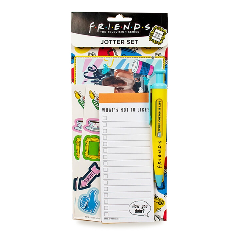 Για όλους εσάς που δεν μπορείτε να ξεχάσετε την αγαπημένη παρέα, το πολύχρωμο και πρακτικό σετ γραφής είναι εδώ για να κρατήσει την ανάμνηση ζωντανή. Αποτελείται από πρωτότυπο στιλό με μηνύμα-ατάκες της σειράς «Friends», θεματικά αυτοκόλλητα, σημειωματάρια και διακοσμητικό cut-out. Ένα δώρο που θα εκτιμηθεί.