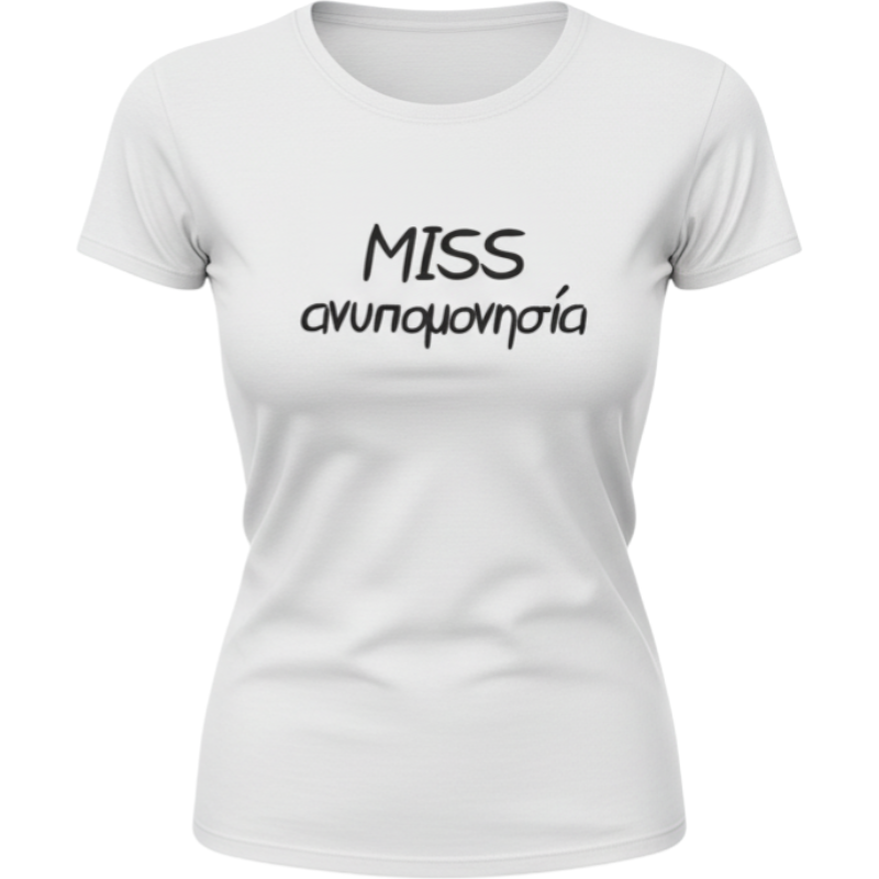 Γυναικείο βαμβακερό κοντομάνικο μπλουζάκι σε λευκή απόχρωση με μήνυμα «MISS ανυπομονησία».