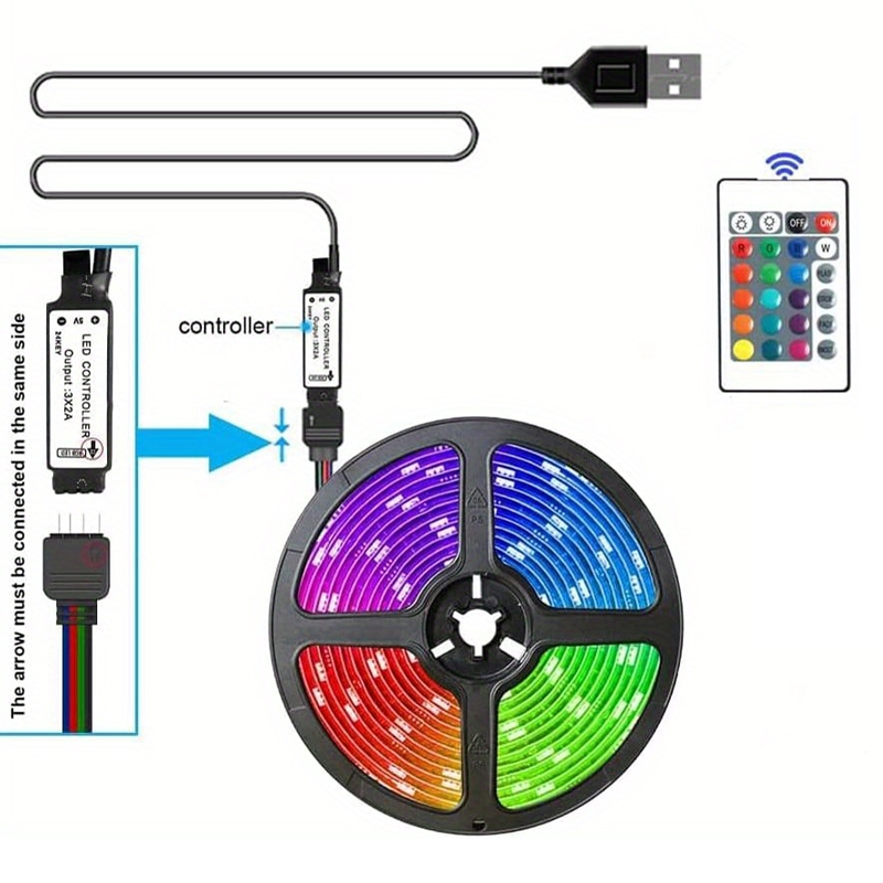 Ρυθμιζόμενος φωτισμός led ταινίας με τηλεχειριστήριο και σύνδεση usb.