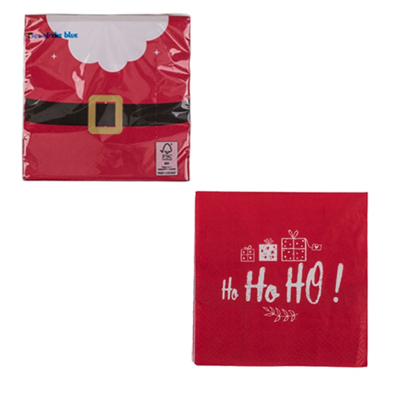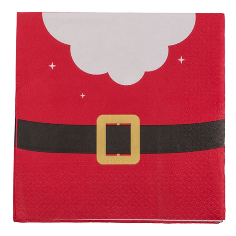 Ένα εορταστικό σετ από χαρτοπετσέτες για να δώσει χρώμα στο χριστουγεννιάτικό σας τραπέζι. Ο ξεχωριστός σχεδιασμός του αποτελείται από το σχέδιο της γενειάδας και της ζώνης του αγαπημένου Άγιου Βασίλη από την μία πλευρά και το αναγνωρίσιμο γέλιο του από την άλλη. Ένα εντυπωσιακό σετ που θα λατρέψουν να χρησιμοποιούν μικροί και μεγάλοι.
