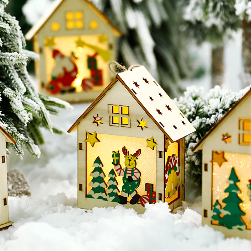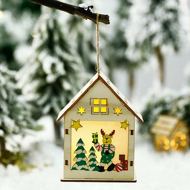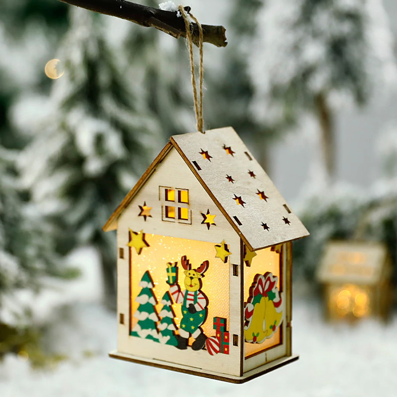 Ένα ξύλινο χριστουγεννιάτικο σπιτάκι με λειτουργία φωτισμού για να κρεμάσετε στο δέντρο σας.