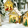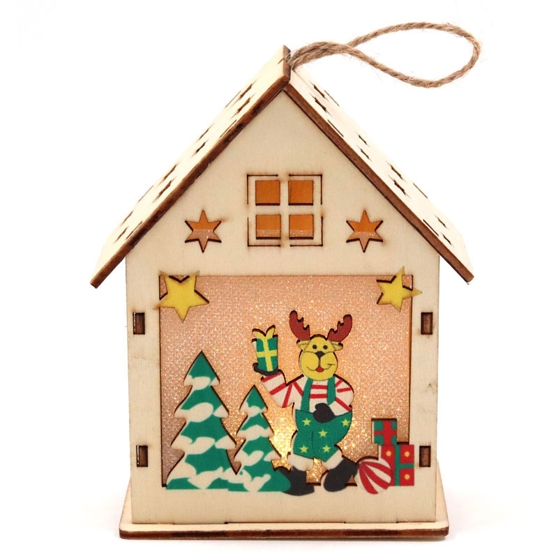 Ξύλινο χριστουγεννιάτικο σπιτάκι με φως και τάρανδο - 12,5 εκ.